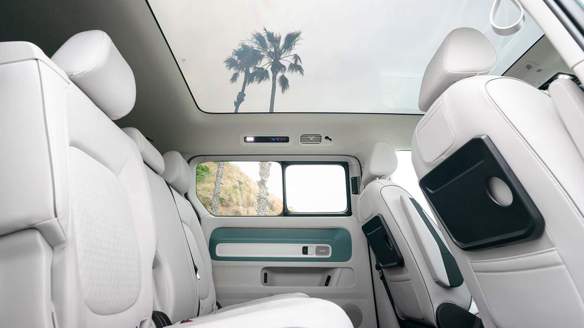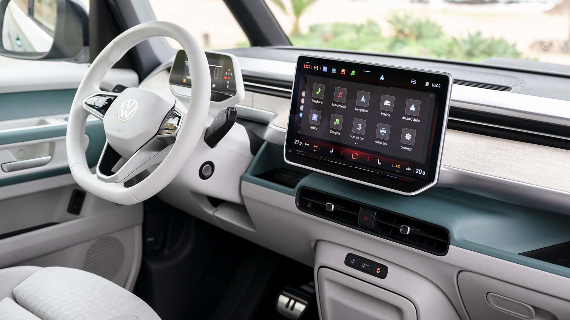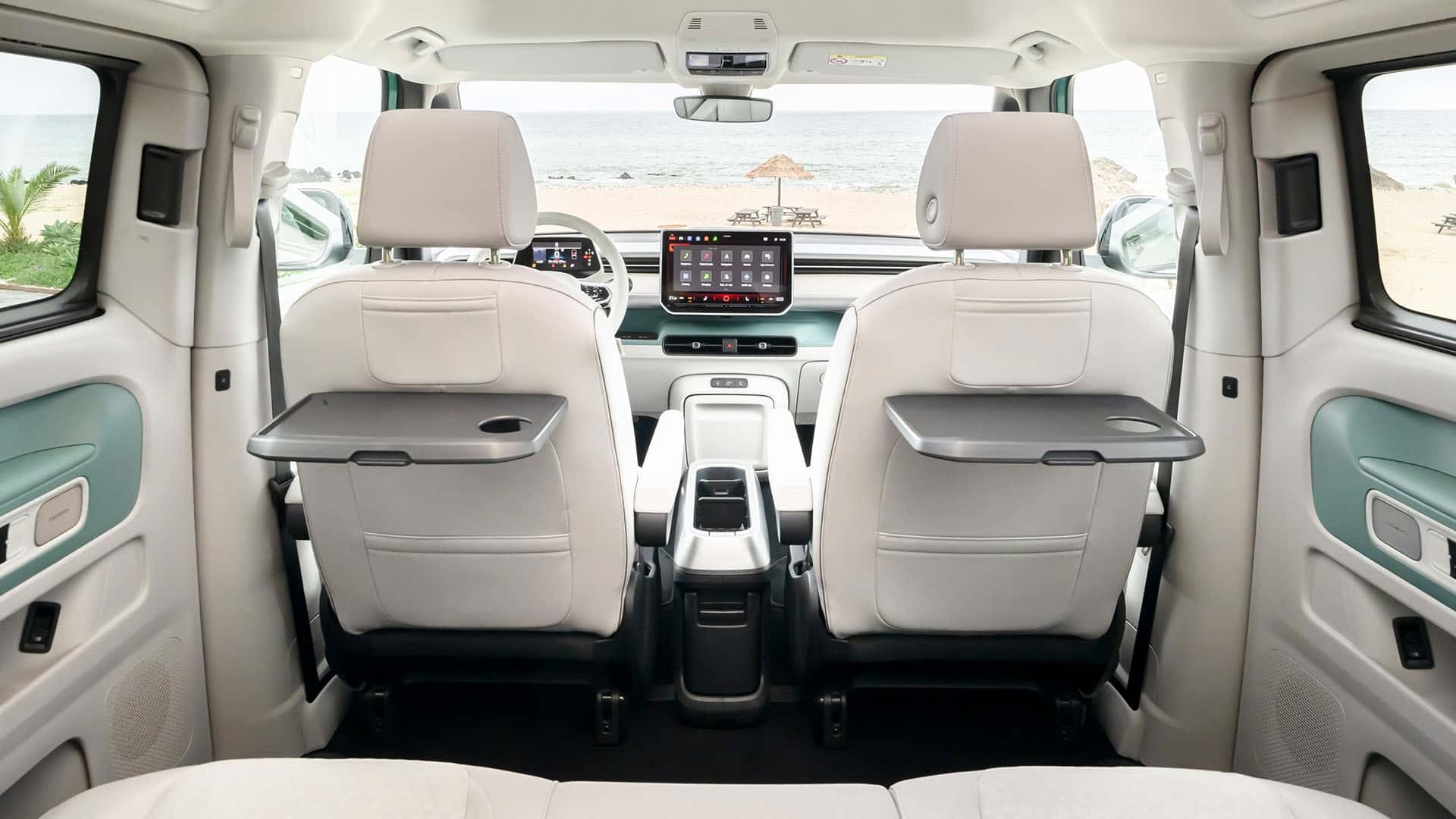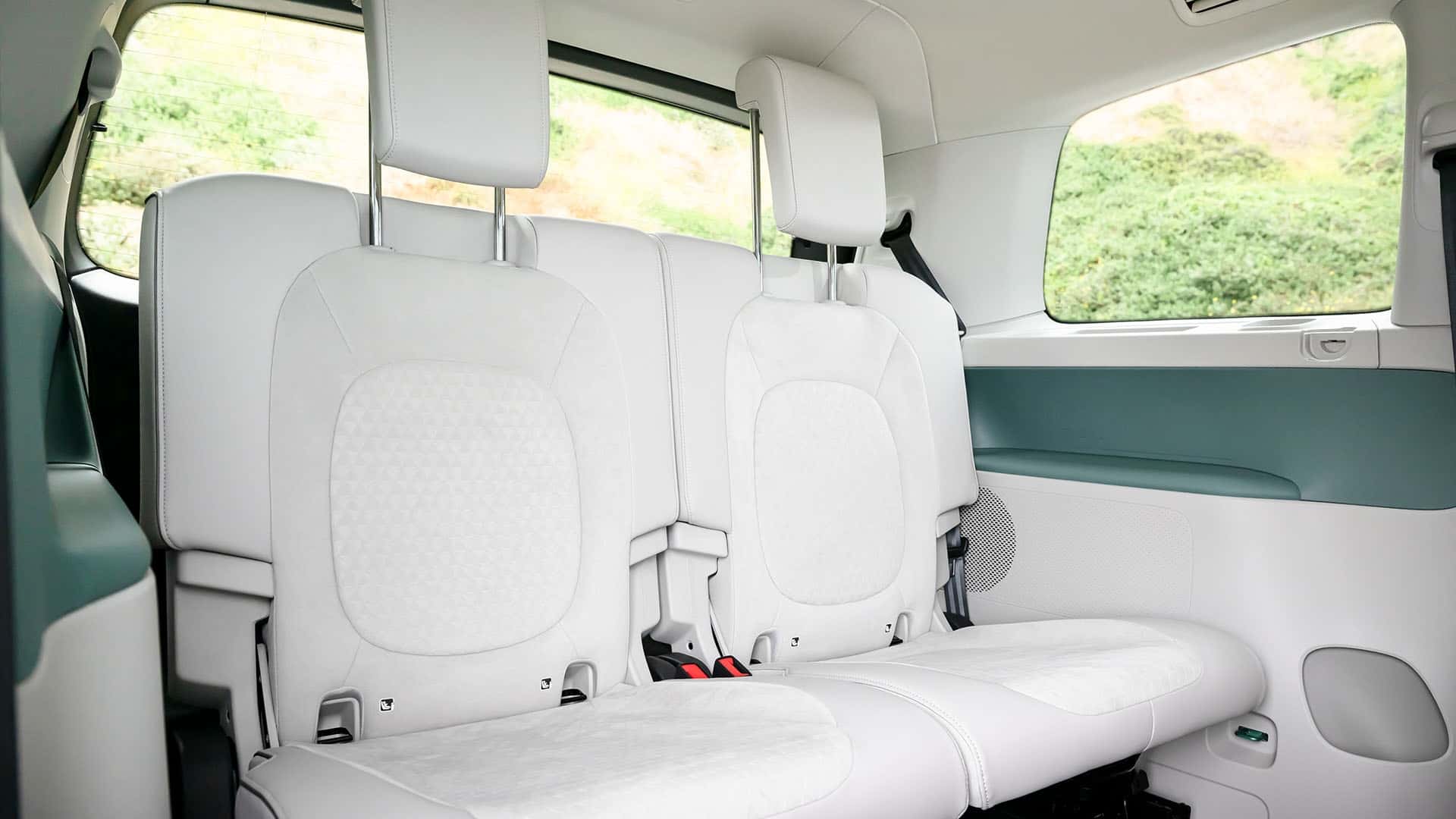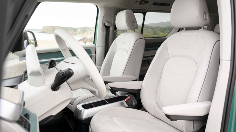 Наголошується, що VW ID. Buzz буде доступний у 6 та 7-місцевій конфігураціях. Сидіння другого ряду можуть зсуватися вперед і назад на відстань до 200 мм і складатися у співвідношенні 60:40. Оздоблення салону виконано з еко-шкіри . Також можна відзначити наявність тонованих задніх вікон та панорамного даху з електрохроматичною технологією.