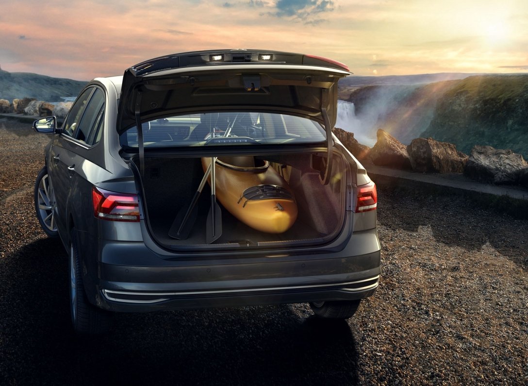 Передня частина седана виконана в тій самій стилістиці, що й у хетчбека Polo. У нього такі ж світлодіодні тонкі фари та вузька решітка радіатора. Салон новинки також має знайомий вигляд. У його оснащення увійшла мультимедійна система з 7-дюймовим сенсорним екраном, кондиціонер, круїз-контроль та шість подушок безпеки. Топової версії доступні система клімат-контролю, бездротова зарядка для смартфона, камера заднього виду, фонова підсвітка та збільшений екран мультимедії.