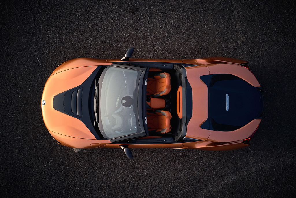 Карбон также используется при изготовлении порогов с более прочными поперечными усилителями. Дополнительные силовые элементы на передней и задней осях помогают увеличить жесткость кузова. Масса нового родстера составляет 1595 кг, что всего на 60 кг больше, чем у купе. Это впечатляюще низкий показатель для автомобиля с открытым верхом.