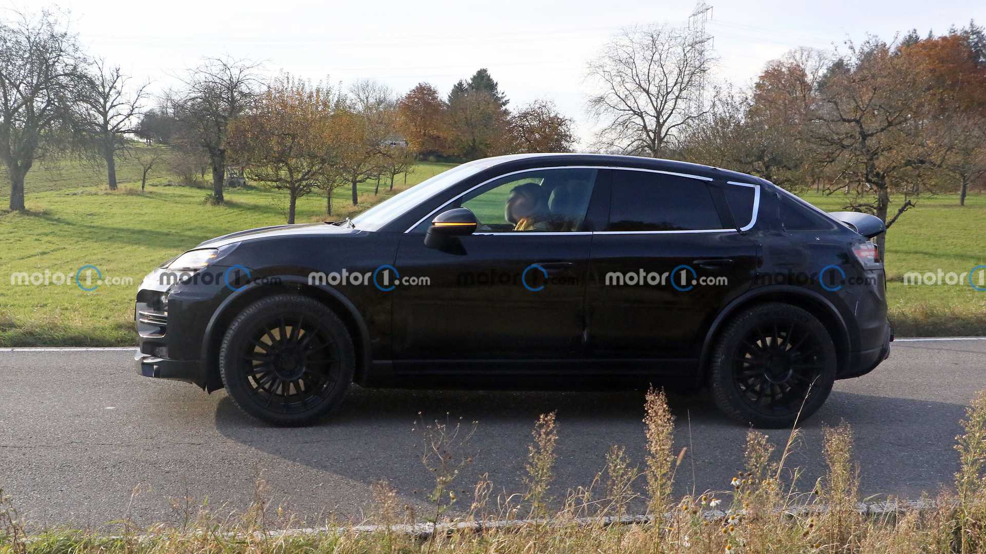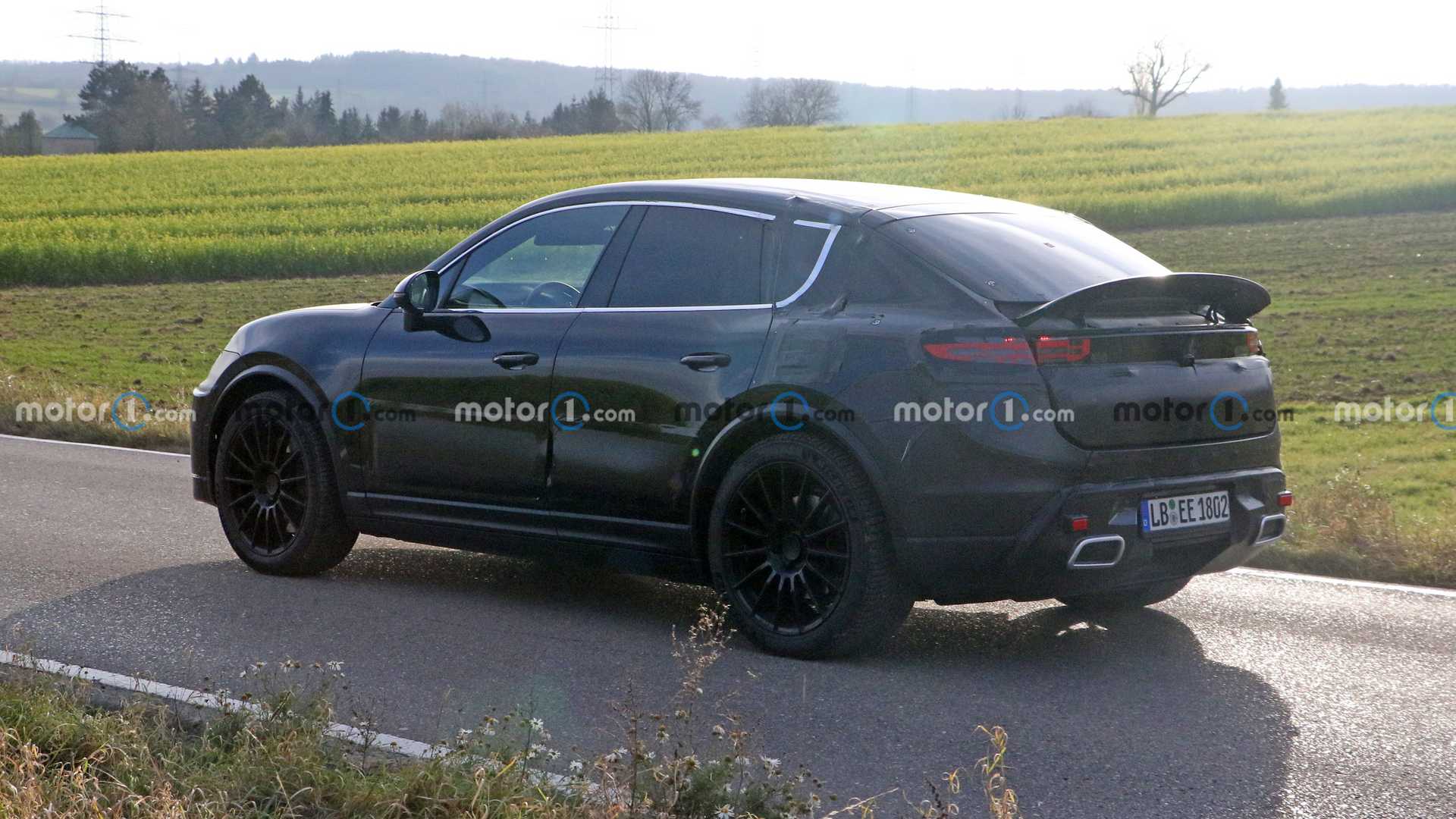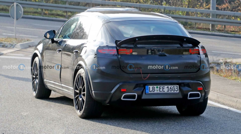 На кормі кросовера Porsche Macan видно висувний спойлер і наконечники вихлопної системи. Останні — імітація, яку виробник використовує на всіх своїх електричних прототипах. Ліхтарі поміняють свою форму, а стоп-сигнал змінить місце свого розташування. З огляду на нахил задніх дверей лінія даху моделі буде більш похилою, що зробить її спортивнішою.