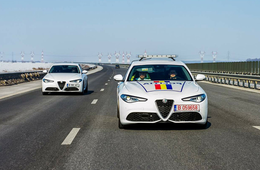 Alfa Romeo Giulia Veloce получила местная дорожная полиция в рамках 12-месячного партнерства с официальным румынским импортером Alfa Romeo. Полицейский автомобиль одели в соответствующие ливреи, а также снарядили мигалками и спецсвязью.