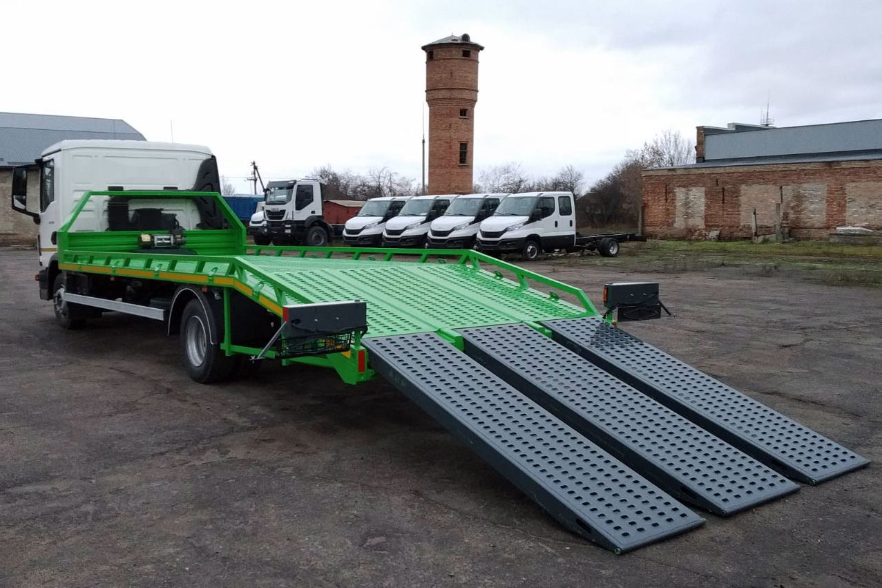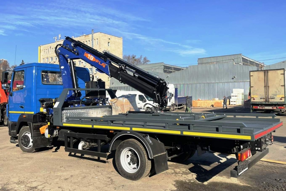 Завод спецтехніки “Техкомплект” також пропонує і автоевакуатори, укомплектовані кранами-маніпуляторами італійських марок PM і Сomet. Місяць тому на підприємстві виготовили подібну модель.