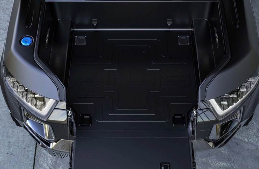 Ще одна особлива характеристика – вантажопідйомність. Вона перевищує 2200 кг, а максимальні голювальні здібності сягають 9000 кг. Сміливо! Зверніть увагу на “обличчя”, що відкривається, забезпечуючи зручний доступ до переднього багажника. Якщо дивитись на рендери, дизайн електромобіля вийшов спокійним. Більше годі й говорити! Увагу привертають хіба що камери замість зовнішніх дзеркал, але цей елемент навряд чи піде в серійне виробництво. В інтер’єрі також обрали шлях найменшого опору: все виглядає просто і акуратно. І куди ж без величезного сенсорного дисплея і цифрової панелі приборів? З обох боків від нього, до речі, розташовані “дзеркала”, що транслюють зображення з камер. Схоже, зручне рішення, чи не так?