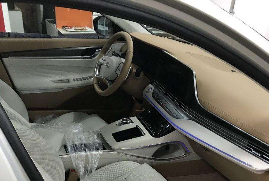 В інтер’єрі помітно покращився не тільки дизайн, а й якість матеріалів оздоблення. Елементи управління на багатофункціональному кермі стануть хромованими, з’явиться багато елементів, оздоблених під шкіру. Наприклад, салон екземпляра, знімки якого опинилися в розпорядженні Top Rider, оформлено у двох відтінках бежевого з чорними елементами, що більше ріднить седан з флагманськими моделями Genesis, ніж з актуальним Grandeur.