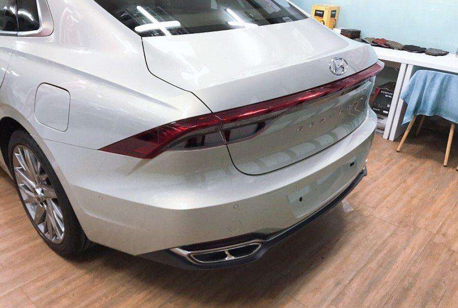 Як пише Motor, передня частина седана стане абсолютно іншою і не матиме нічого спільного з поточним поколінням Grandeur. Фари об’єднають з решіткою радіатора, а сам «ніс» стане практично пласким, майже без виступних деталей. Одним із найнезвичайніших рішень стануть ромбоподібні денні ходові вогні, які інтегрували в решітку радіатора з аналогічним візерунком.