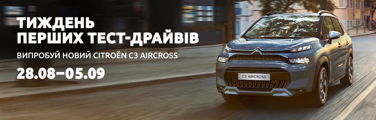 Чекали зустрічі з Новим CITROЁN C3 Aircross? Цей момент настав – новинка вже надійшла в тестовий парк дилерських центрів CITROËN по всій Україні і готова прийняти на свій комфортабельний борт потенційних клієнтів на тест-драйв! У період з 28 серпня по 5 вересня стартує Тиждень перших тест-драйвів Нового CITROЁN C3 Aircross! Заповнюйте заявку і опиніться в числі перших щасливчиків, які оцінять оновлену зовнішність очікуваного кросовера Бренда – вона стала більш мускулистою та виразною, а також випробують комфорт і їздові характеристики.