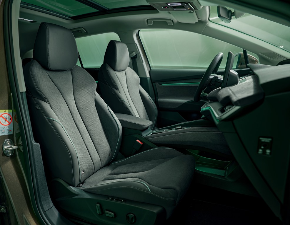 Новий Enyaq тепер постачається з ще більш широким стандартним обладнанням, включаючи підігрів передніх сидінь, підігрів керма та інші технічні вдосконалення. Стандартні функції включають безключовий доступ KESSY Advanced із функціями блокування під час наближення та відходу, 3-зонну систему клімат-контролю Climatronic, Side Assist (асистент утримання смуги), адаптивний круїз-контроль із прогнозуванням (pACC) і асистент руху в заторах. Remote Park Assist і Remote Trained Parking — нові цифрові функції.