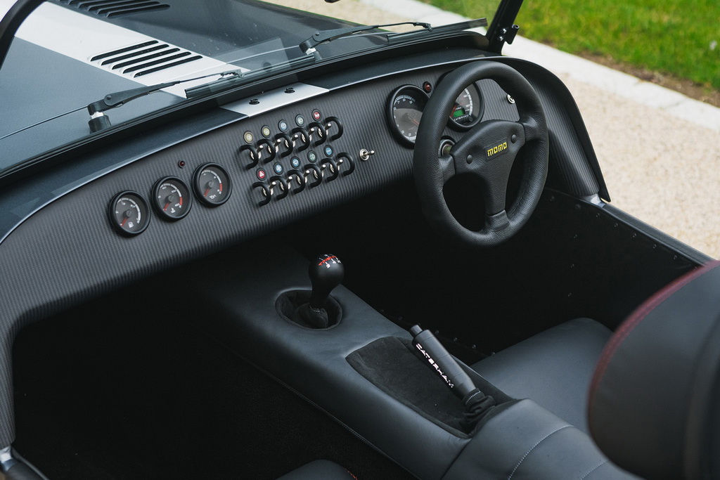 У Caterham стверджують, що інтер’єр Seven CSR Twenty «не має собі рівних за якістю та оздобленням». Сидіння оббиті преміальною шкірою Muirhead зі вставками з алькантари, з червоним рядком та логотипами CSR Twenty на спинках сидінь. Яскравим елементом дизайну інтер’єру стала карбонова панель із приладами CSR Twenty. Рульове колесо Momo і центральний тунель обтягнуті шкірою, а важіль перемикання передач та ручне гальмо – алькантарою. Між сидіннями є декоративна табличка із порядковим номером моделі.
