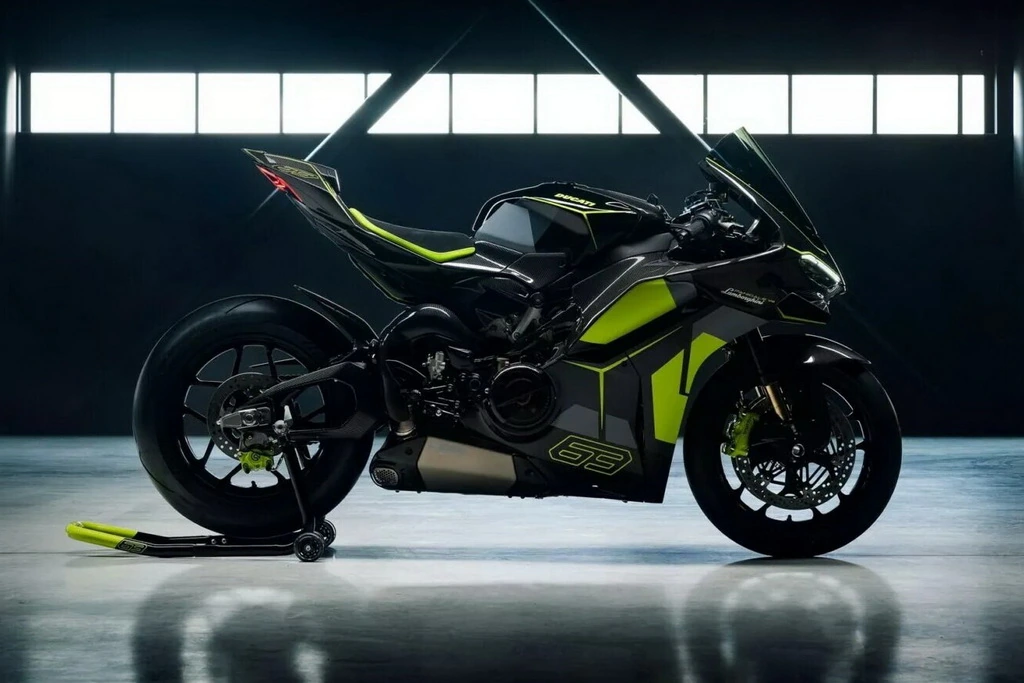 Два культові італійські бренди Ducati та Lamborghini вкотре вирішили створити колаборацію. Цього разу лімітована серія супербайків присвячена суперкару Revuelto. Новинка одержала ім'я Ducati Panigale V4 Lamborghini. Від звичайного Panigale V4 S версія Lamborghini відрізняється оригінальними кузовними панелями з карбону, аналогічного тому, що використовується при виготовленні Revuelto. Також мотоцикл отримав особливу ліврею, яка поєднує в собі відкрите вуглецеве волокно із зеленим (Verde Scandal) та сірими (Grigio Telesto/Grigio Acheso) елементами.