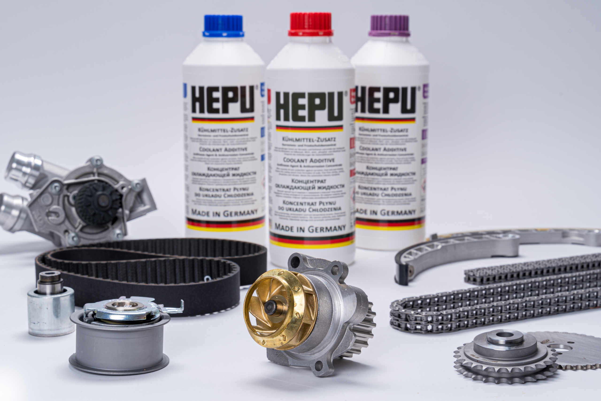HEPU як провідний німецький виробник водяних помп для ринку автозапчастин, виступає за компетентність та новаторський підхід у галузі систем охолодження. Охолоджуючі рідини HEPU преміум класу, які виготовляються виключно в Німеччині, гарантують захист від корозії, захищають двигун від перегріву та забезпечують захист від замерзання. Продукт чітко відповідає специфікаціям виробників транспортних засобів, а двигун надійно захищений за будь-яких експлуатаційних та важких погодних умов. Саме завдяки цьому два преміум-продукти: антифриз HEPU та оливи MAXXUS, є відмінним доповненням до водяних помп HEPU та його комплектів, а також комплектів ланцюгів синхронізації.