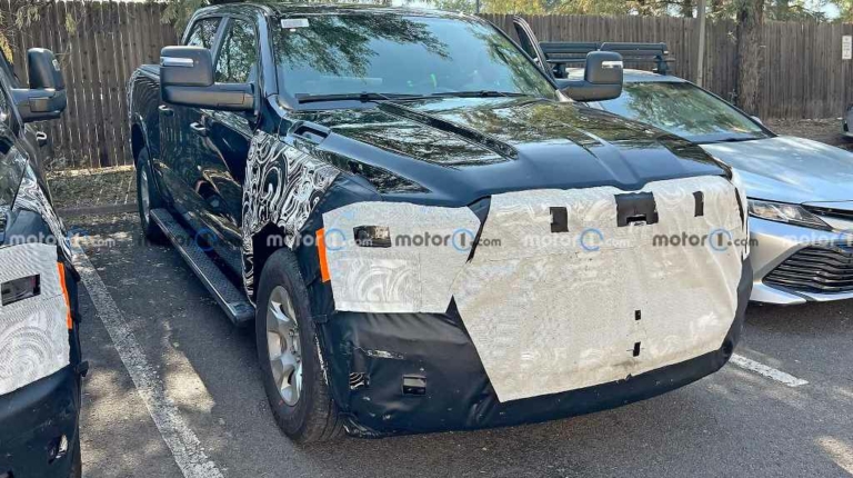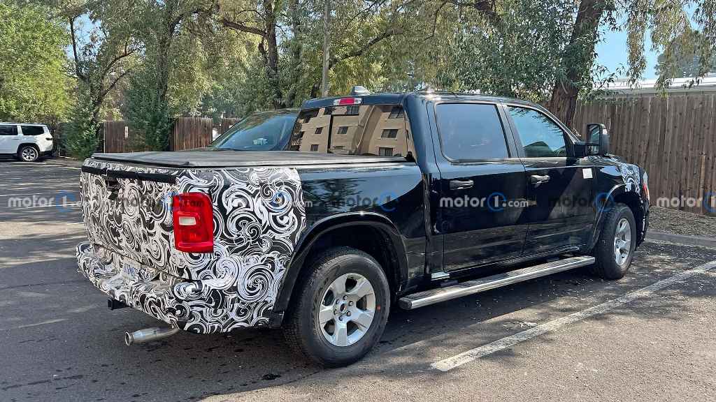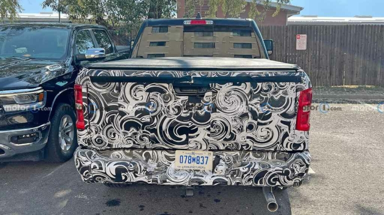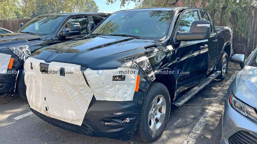 До об’єктиву фотошпигунів потрапили тестові мули з мінімальним камуфляжем, який покриває лише передню та задню частину машини. Судячи з колес, це пікапи в комплектації Big Horn. Вони отримали перероблений бампер зі збільшеним повітрозабірником та меншого розміру фари.