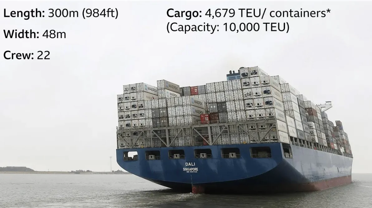 Dali здійснював рейс із морського терміналу Сігірт у Балтіморі в Коломбо, Шрі-Ланка. Під час проходу річкою Патапсько судно раптово відхилилося від курсу й почало сповільнюватися. На відео видно, що всі вогні зовні корабля згасли, а з труби почав валити дим. Незабаром після цього він урізався в опору моста.