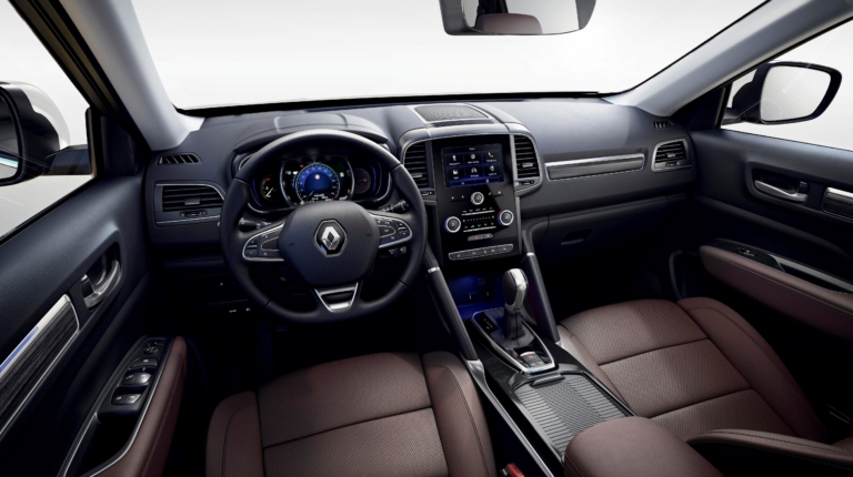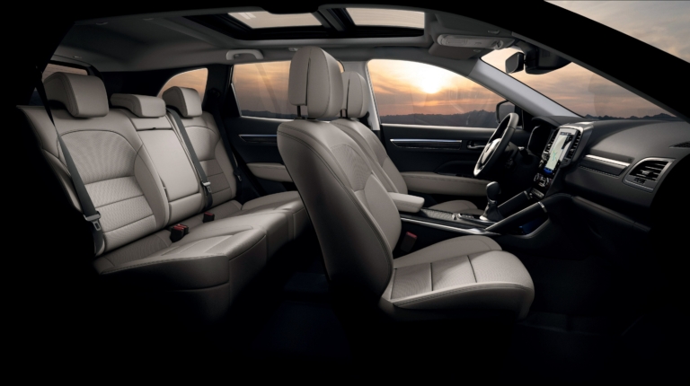 Інтер’єр Renault Koleos 2020 модельного року отримав оновлене озоблення. Зокрема, річ про нову шкіряну оббивку сидінь Nappa. Варто зазначити, що це новинка з іншими новими підголівниками і пропонується в двох кольорах, йде як додаткова опція. (В базі Інтенс – чорна шкіра, а на вибір без доплати – коричнева або світло-сіра). Верхня частина сидінь відтепер має ромбовидне прошиття. Самі крісла можуть мати підігрів (як передні, так і задні бічні), а також вентиляцію. Крім того, подушки передніх сидінь в якості опції отримали також висувні валики, які дозволяють покращити кофорт, особливо в довгих поїздках. А водійське сидіння до того ж має функцію масажу, електрорегулювань положення та їх “пам’ять”.