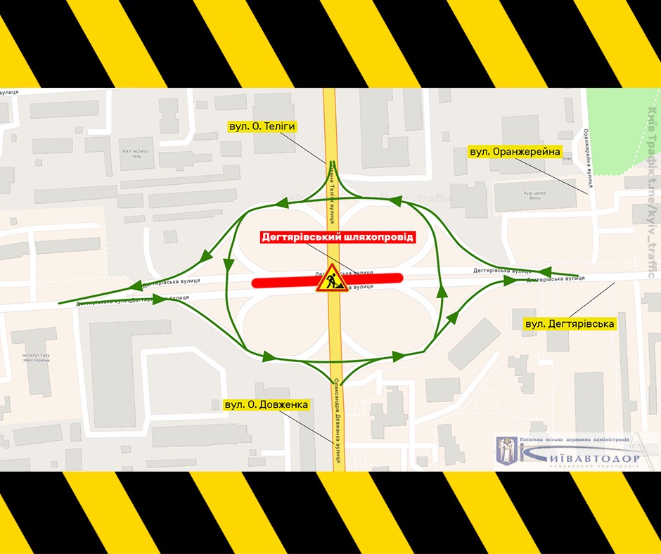 Департамент транспортної інфраструктури КМДА повідомив про продовження реконструкції Дегтярівського шляхопроводу на три тижні, до 20 грудня. Відповідне розпорядження опубліковано на Офіційному порталі Києва.