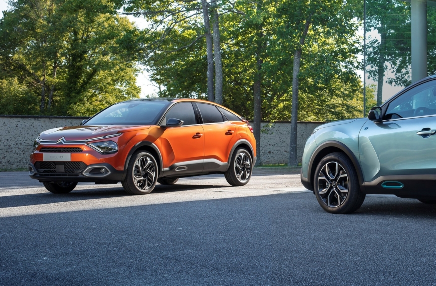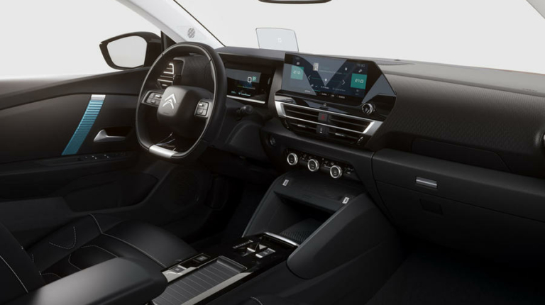 В качестве силовых агрегатов предложены турбобензиновый 1.2 PureTech (110, 130 или 155 л.с.) и турбодизельный 1.5 BlueHDI (110 или 130 л.с.). Коробки передач предложены на выбор: 6-ступенчатая “механика” или 8-ступенчатый “автомат” Aisin. Особняком стоит полностью электрифицированная версия, получившая забавную приставку ё к названию C4. Это 100% электромобиль с батареей 50 кВт*ч и электромотором мощностью 136 л.с. и крутящим моментом 260 Ньютоно-метров. Заявленный запас хода по циклу WLTP при этом – 350 км. От станции быстрой зарядки (100 кВт) Citroen e-C4 можно будет зарядить за 30 мин до 80% заряда батареи. А за 10 мин пополнить запас энергии, достаточный для преодоления 100 км. Также для электро-версии С4 объявлены и другие характеристики. Разгон до “сотни” будет занимать 9,7 секунды, а максимальная скорость составит 150 км/ч. А вот для версий с ДВС все характеристики еще не обнародованы.