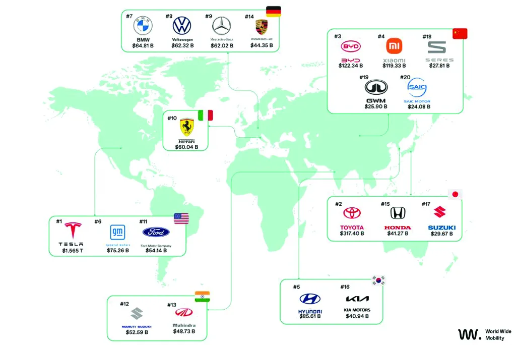 За даними World Wide Mobility, у 2026 році до «двадцятки» найбільш дорогих з точки зору ринкової вартості автовиробників увійшли відразу 5 китайських автомобільних компаній. Причому дві з них – Xiaomi та Seres – зовсім недавно вийшли на автомобільний ринок.