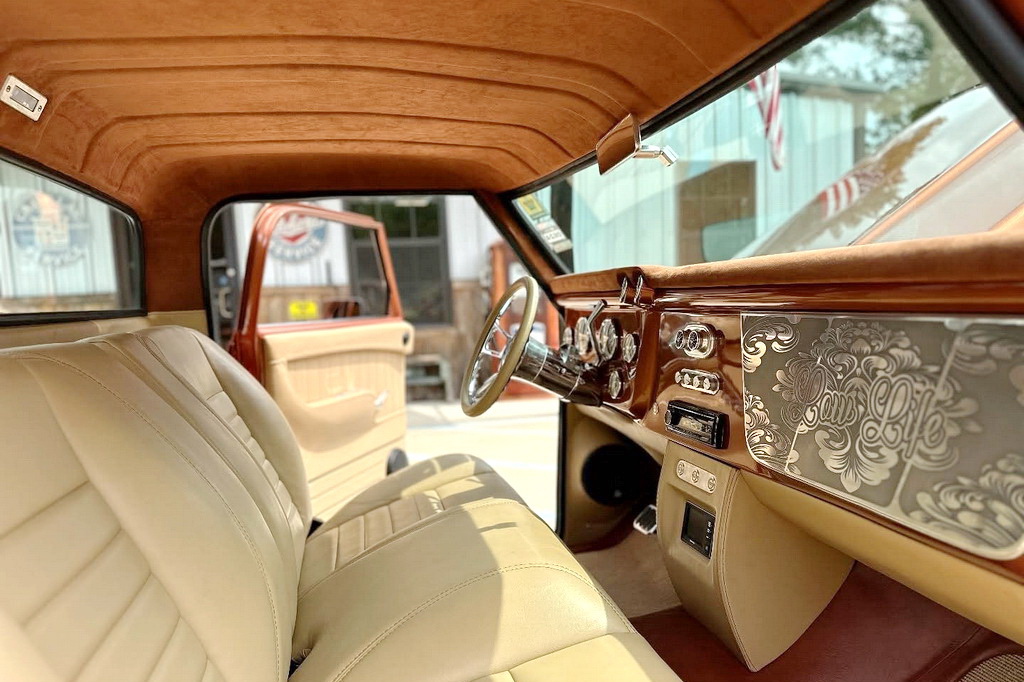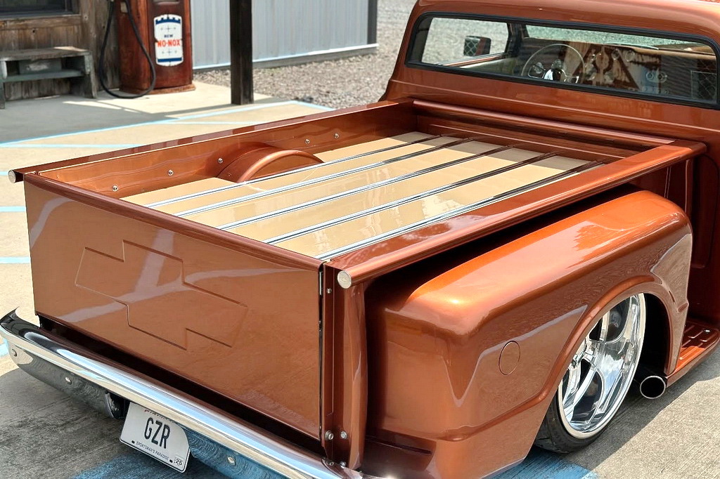 Доповнюють вигляд пікапа прихований бічний вихлоп, хромовані диски Raceline і виготовлена на замовлення дерев’яна піднята підлога кузова. Під капотом розташувався класичний 6,3-літровий Small Block 383 Chevy V8 з комплектом Holley Performance Pro EFI, блоком керування двигуном Terminator X Max, розподільником EFI та комплектом клапанних кришок Hidden LS. У парі з “вісімкою” працює 4-ступеневий “автомат” 4L60E від GM.