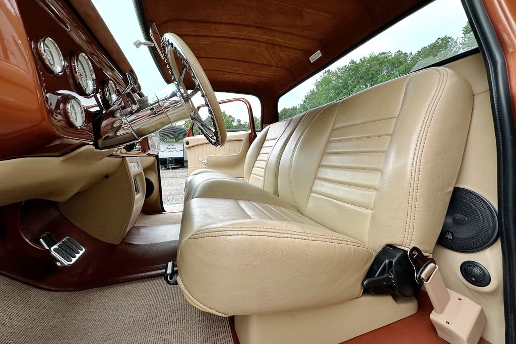 У процесі створення цього унікального пікапа майстрами Nobody Customs & Restorations було виконано величезний обсяг робіт. Машину розібрали до рами та зібрали заново, повністю покривши кузов класичним червоно-коричневою емаллю PPG Refinish. Моторний відсік отримав контрастну обробку Satin Black від Sweet Patina разом з основною опорою та підвіскою. Під кузовом знаходяться передній та задній комплекти модернізації підвіски Porterbuilt Level 3 та пневмосистема Ridetech E5 Pro.