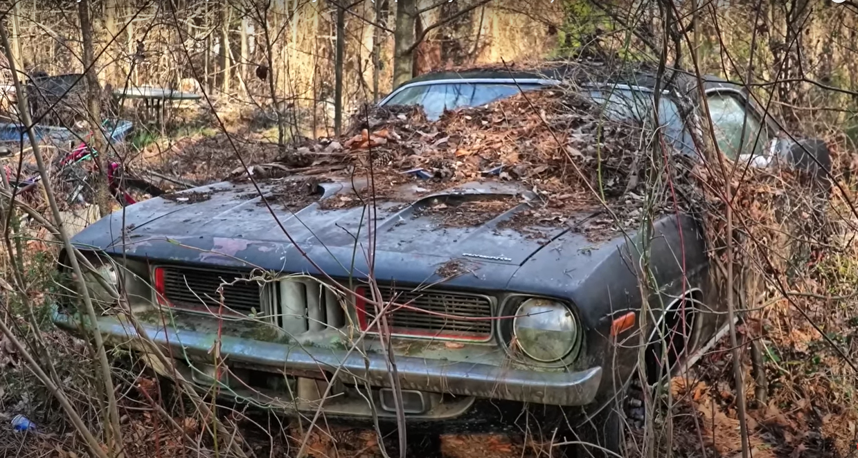 Особливу цінність для експертів представляє чорний Plymouth Cuda 340. Його салон та вініловий верх також виконані у темному відтінку. Під капотом встановлений 5,6-літровий двигун V8. На жаль, дах під покриття сильно проржавілий, але фахівців це не збентежило і вони готові реставрувати машину.