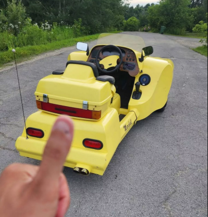 Відомо, що автором цього триколісного транспортного засобу є канадський майстер. Виготовили його під замовлення. Але допуску на дороги цей гібрид не отримав, що і не дивно, враховуючи дивність конструкції. Тюнер розпиляв купе та мотоцикл навпіл і використав передню частину купе і задню від байка. Щоб з’єднати їх між собою, використав посилене трубчасте шасі. В результаті вийшов напівлегковий автомобіль, напівбайк.