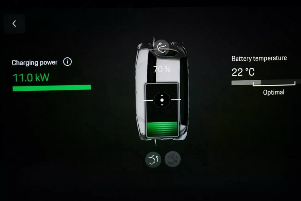 Підлога має всі необхідні компоненти для бездротової зарядки, хоча її необхідно увімкнути за допомогою кабелю. Коли позашляховик опиниться у правильному положенні, пневматична підвіска автоматично опускається, скорочуючи відстань між двома зарядними пристроями до 10-15 см. Допомогти водієві зайняти правильне положення на паркуванні допоможе кругова функція Cayenne. Процес заряджання можна контролювати через програму My Porsche.