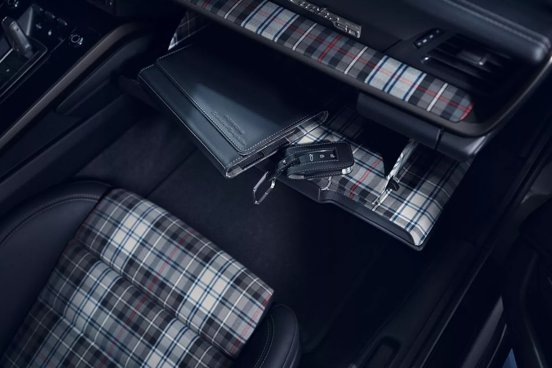 Хоча тартан традиційно асоціюється із Шотландією, у компанії Porsche вирішили його використовувати для обробки салону. За словами представників Porsche, натхненням послужили штани “в клітку” головного дизайнера Анатолія Лапіна. Звичайна тканина для одягу була недостатньо міцною для використання як оздоблювальний матеріал, але стиліст Доротея Мюллер-Гудвін знайшла німецького постачальника з відповідними тканинами, які відповідали необхідним вимогам.