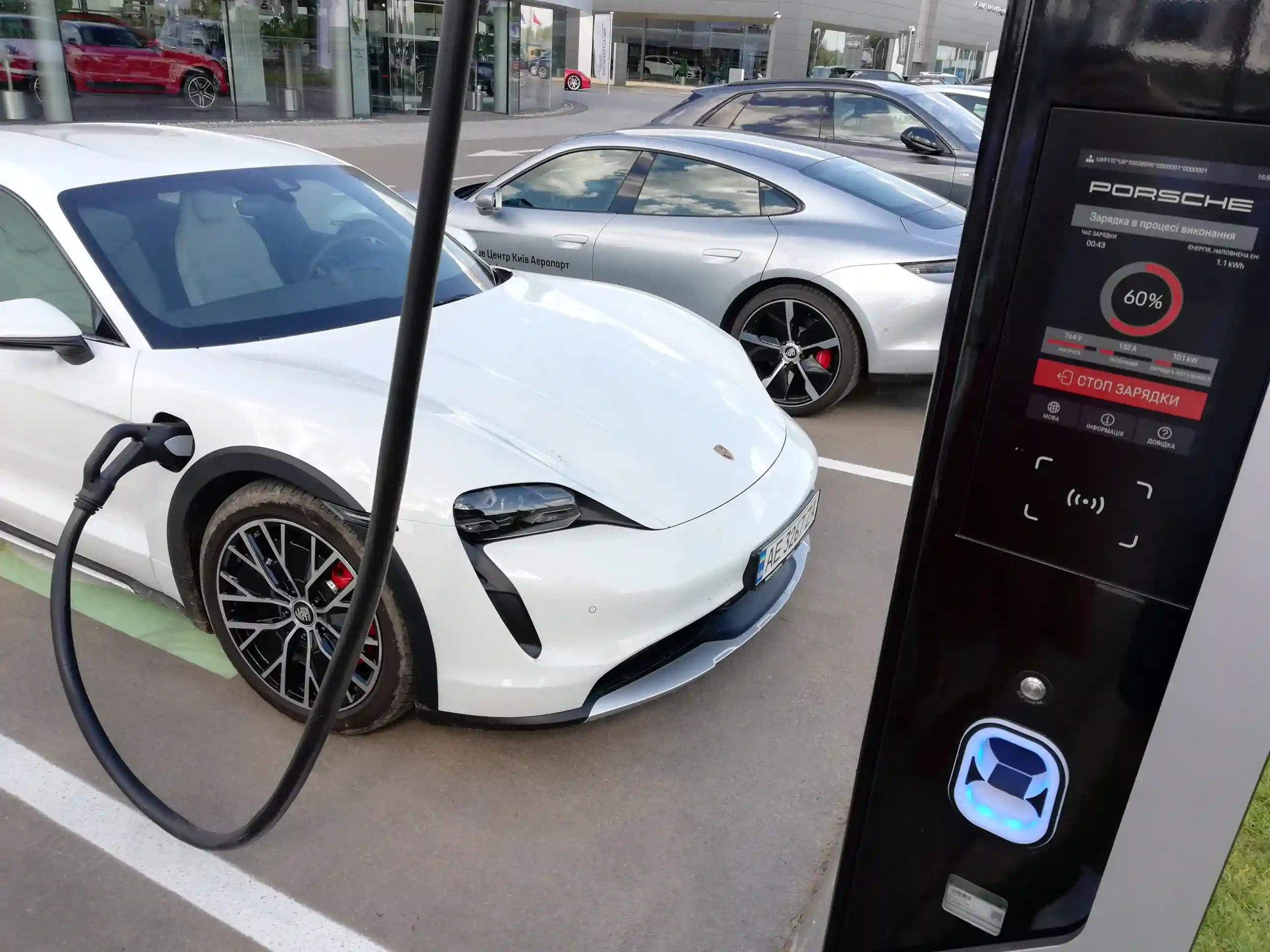 P.S. В ходе презентации журналистам показали едва ли не более эксклюзивную вещь - супермощную зарядную станцию на 320 кВт! Установлена она возле дилерского центра Porsche и предназначена в первую очередь для владельцев этих электромобилей. И учитывая, что Taycan Cross Turismo готов принимать до 270 кВт, на такой турбо-зарядке его можно будет “заправлять” очень быстро! Но это пока скорее из области хай-тэк, ведь такая зарядная станция в Украине на сегодняшний день одна.