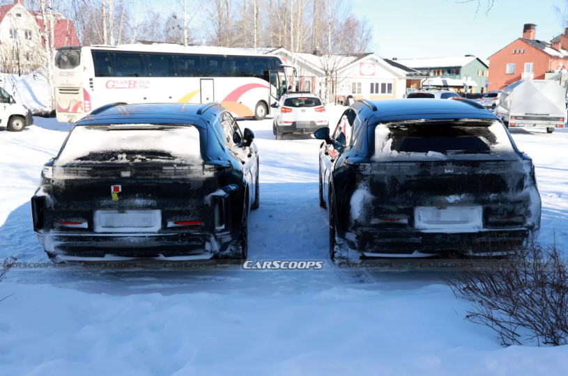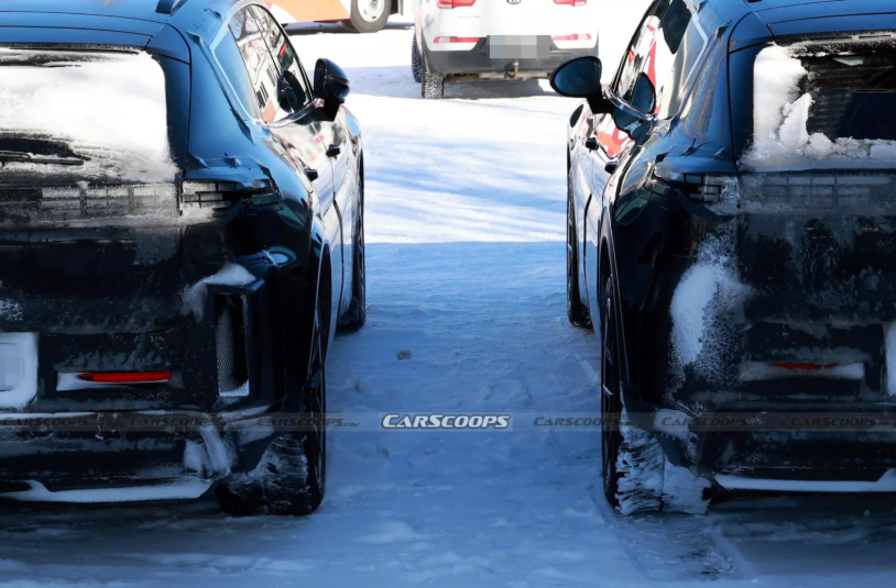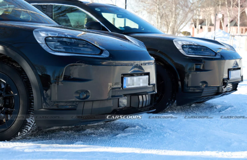 Тестові мули Cayenne EV помітили у Швеції. Погляд шпигунів привернула передня частина машин, які були покриті щільним камуфляжем і припарковані поруч. У них відрізняється конструкція бамперів та колісних арок. В одного з прототипів видно аеродинамічні закрилки в нижньому бампері, як у нового 911 GTS T-Hybrid, і є спліттер. Ймовірно, це версія Performance або GTS.