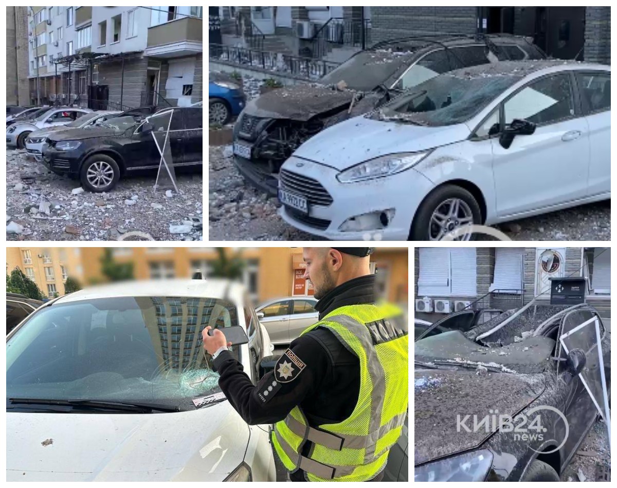 Наслідки атаки на Київ. Від падінь уламків постраждали автомобілі у різних районах столиці