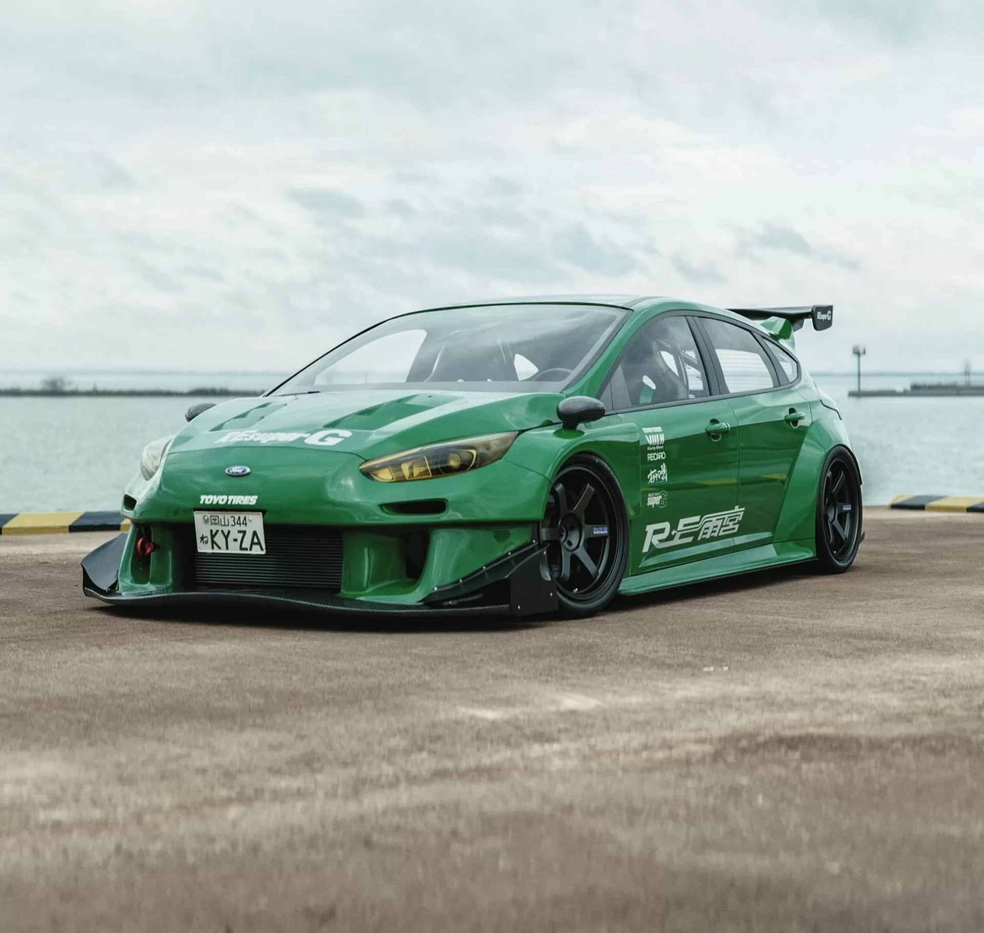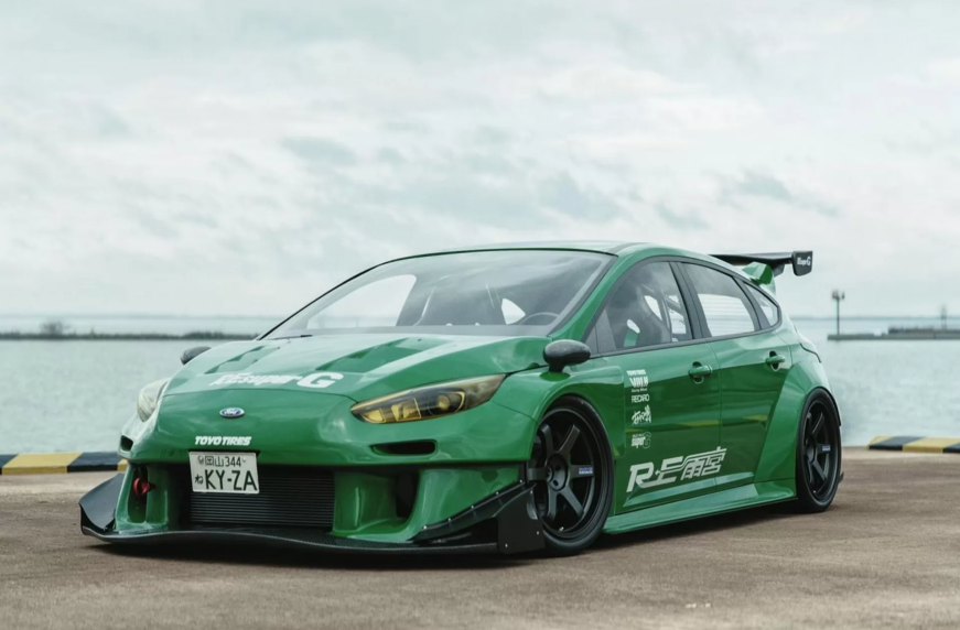 Масивний кузовний обвіс зробив Focus схожим на гоночний болід із максимально заниженою підвіскою. Найпомітніший елемент передньої частини — великий бампер з потужним сплітером та величезними повітрозабірниками у стилі RX-7. Розкосі передні фари — жовтого кольору. У капоті — дві смуги «зябер» для кращої вентиляції двигуна. Бічні дзеркала заднього виду переїхали на розширені передні крила.