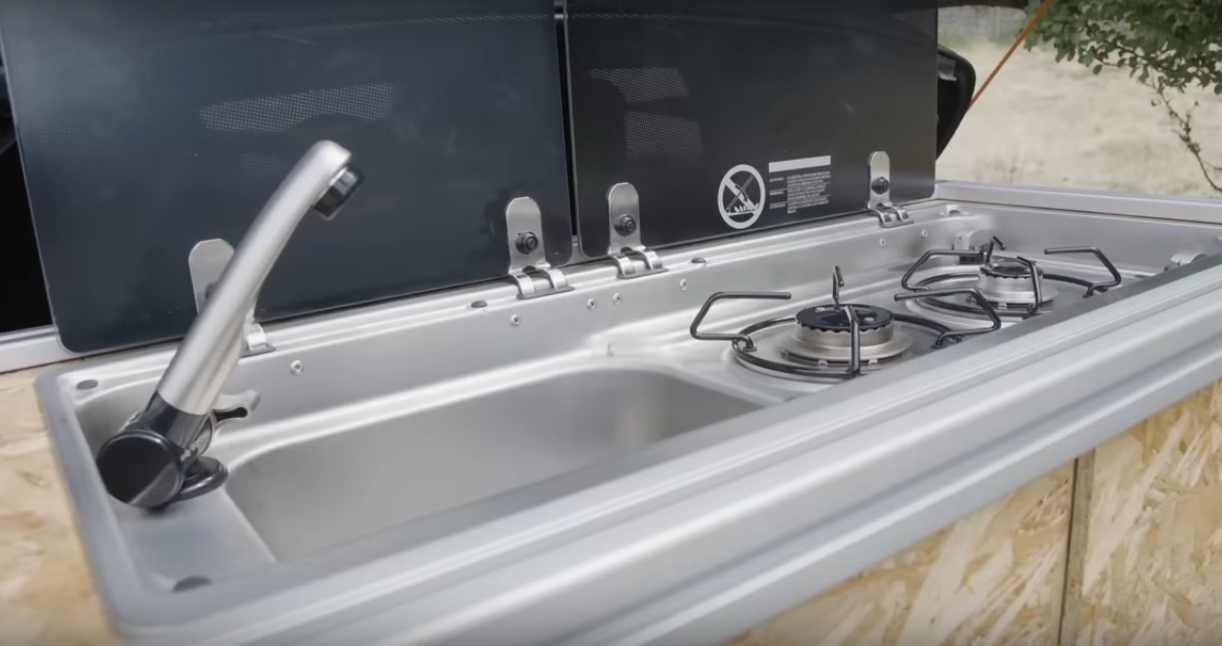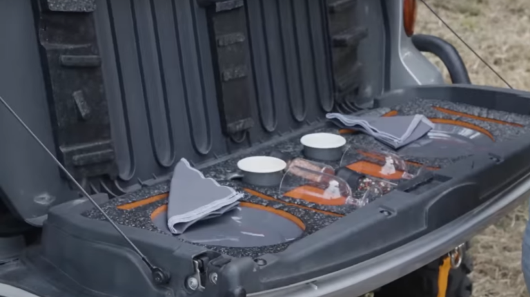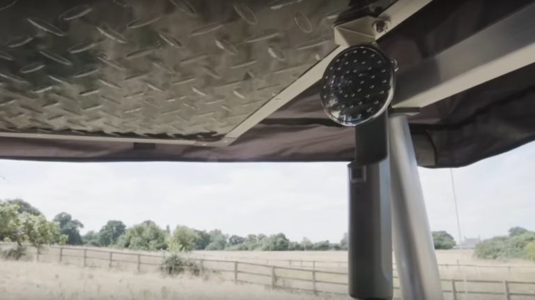 На даху встановили розкладний намет. Його конструкція виступає за межі кузова машини, утворюючи ще й навіс. Під ним розміщено імпровізована душова. У багажному відсіку розмістили великий бокс, де розташована мінікухня. Вона складається з варильної поверхні та мийки. Посуд зберігається у спеціальному футлярі.