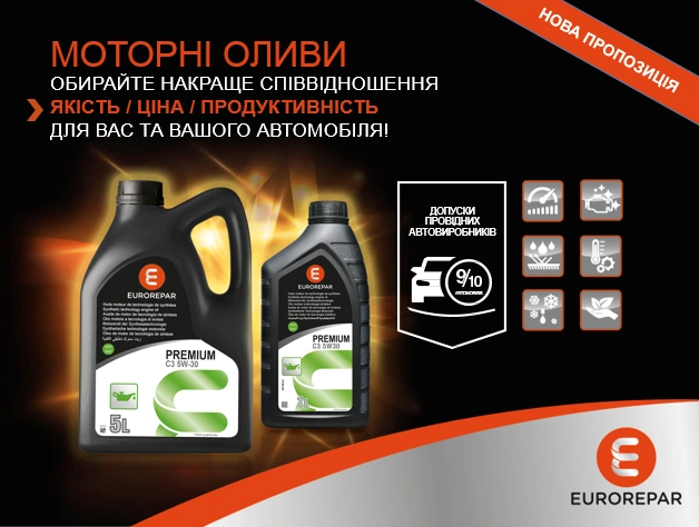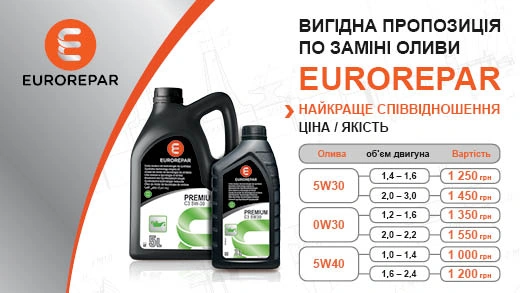 Продуктова лінійка EUROREPAR спеціально розроблена фахівцями Групи PSA для використання на автомобілях Брендів Peugeot і Citroen в післягарантійний період. Як і оригінальні запчастини, товари EUROREPAR проходять строгий контроль якості і відповідають фірмовим високим вимогам, які пред'являються Групою PSA до виробників комплектуючих і запасних частин. Оливи EUROREPAR добре пристосовані як до міських циклів руху (часті розгони, система «стоп/старт»), так і до водіння в заміських умовах (тривалий рух з високою швидкістю і постійними оборотами мотора). В результаті клієнт отримує якісний продукт, гарантію стабільної роботи автомобіля і дуже вигідну ціну!