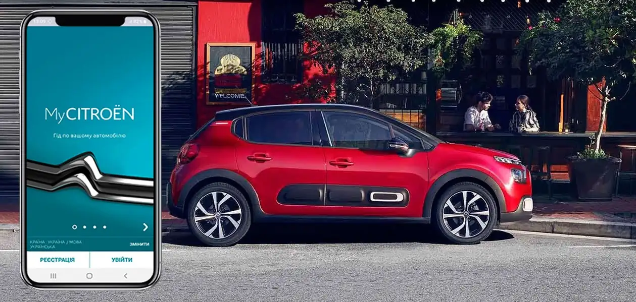 Додаток «MyCitroёn» тепер є і в Україні. Фірмовий додаток – це справжнє продовження вашого CITROЁN: допомога в пошуку автомобіля на парковці, контроль поїздок, запис на сервіс і багато іншого. Додаток «Mycitroёn» виводить взаєморозуміння між власником і його автомобілем на новий рівень.