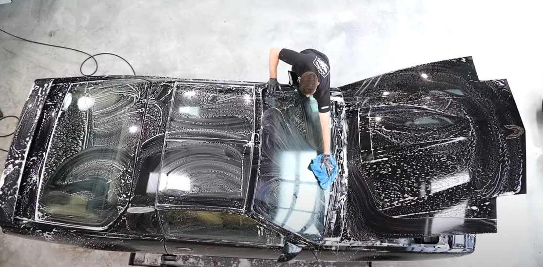На выручку автомобилю пришли специалисты из детейлинг-ателье AMMO. Они проделали колоссальную работу, прежде чем машина обрела прежний вид. Изначально они отмыли ее кузов от пыли и грязи, а затем восстановили лакокрасочное покрытие, заставив сверкать, как прежде. После этого мастера взялись за ходовую и колеса, которые также подвергли глубокой очистке.