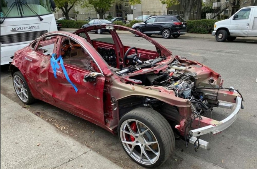Розбита вщент Tesla здивувала своєю живучістю: електрокар, як і раніше, на ходу (відео)