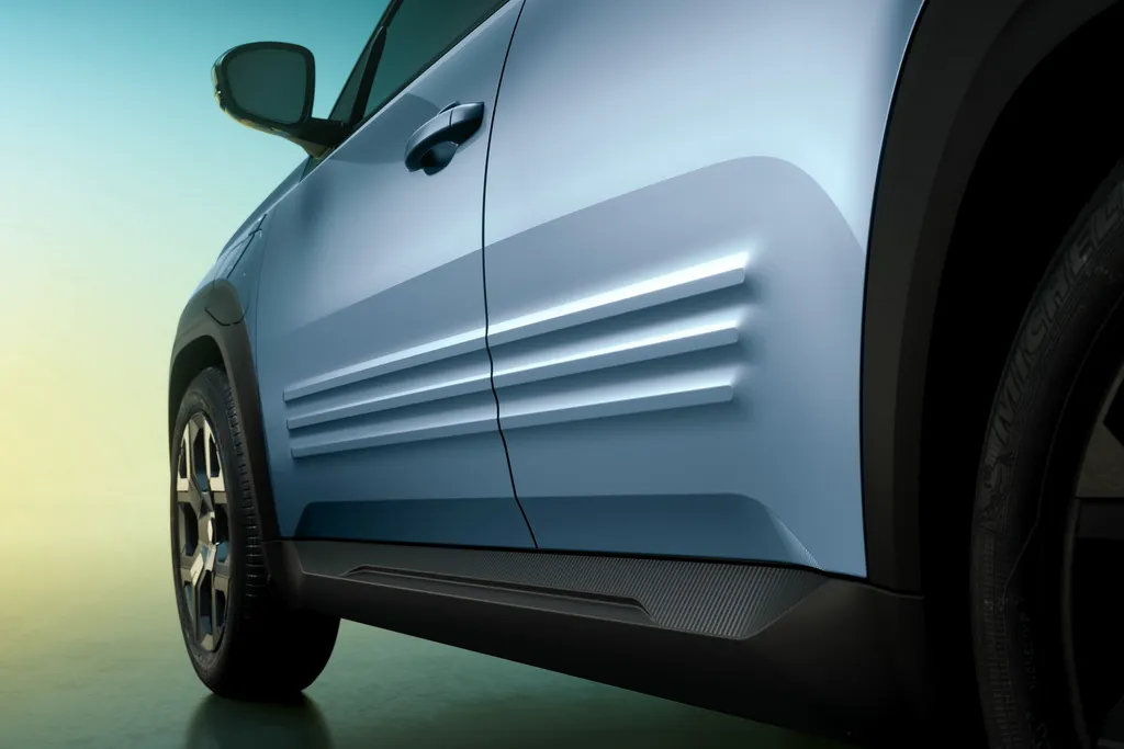 Дизайнери Renault навіть додали діагональну смугу обробки перед дверима, щоб імітувати шов, видимий на перших 4, і горизонтальні ребра з обох боків, як ті, що були на версіях 1980-х років. Тизери також показують брезентовий дах, що забирається, і спойлер на даху, а також чорні пластикові розширювачі колісних арок, щоб новий Renault 4 виглядав так, ніби він може впоратися з бездоріжжям.