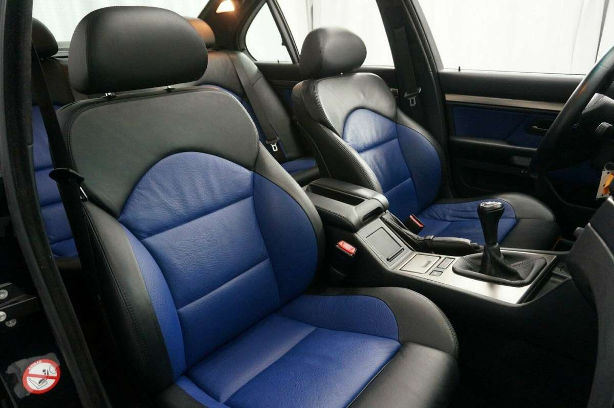 У салоні ви знайдете пам’ять сидіння водія, регулювання висоти ременя безпеки, рульового колеса і зовнішніх дзеркал, стереосистему на 10 динаміків із CD-чейнджером на 6 дисків, клімат-контроль, круїз-контроль, підігрів передніх сидінь, двоколірну чорно-синю шкіряну оббивку, супутникову навігацію та багато іншого. Конкретно цей M5 також оснащений 18-дюймовими багатоспицевими колесами M Satin Chrome, з вентильованими дисковими гальмами по колу. Крім цього ця BMW оснащена всілякими системами контролю стійкості і антибуксами вже в базовій комплектації.