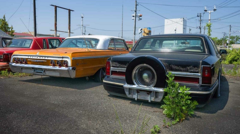 Найпримітнішими з них є помаранчевий Chevrolet Impala SS 1962 року і чорний Lincoln Town Car, який являє собою традиційний катафалк, стилізований під буддистський храм. Також можна відзначити два Каділаки — Fleetwood 1990-х років і лімузин Connossieur, які туляться на вході в автосалон.