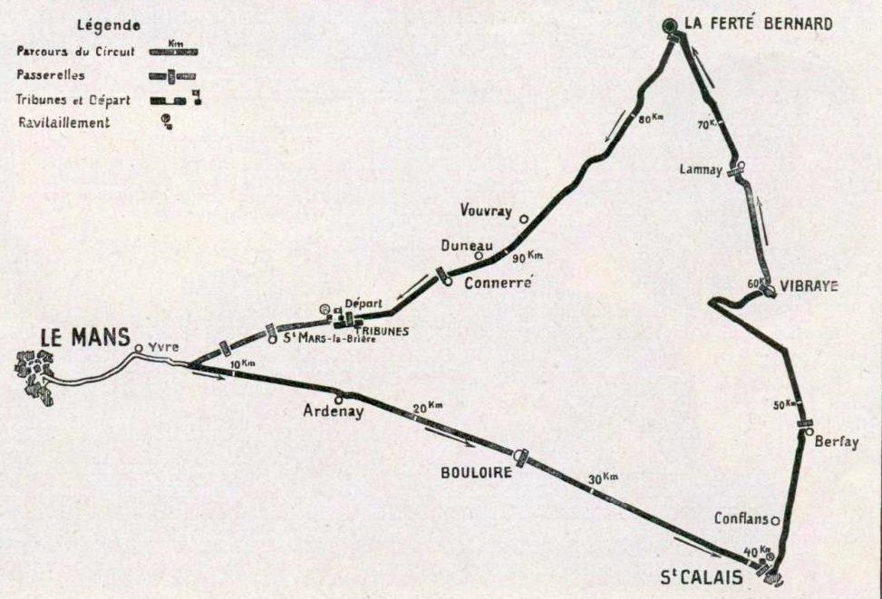 У районі міста Ле-Ман, 26 – 27 червня 1906 проходили перегони, вперше організовані Автомобільним клубом Франції – ACF. Назву вони отримали відповідну – Grand Prix l’Automobile Club de France. Трасу змагань, що має довжину 103,18 км, кожен учасник мав проїхати шість разів на день. Таким чином, загальна дистанція перегонів склала 1236,16 км.