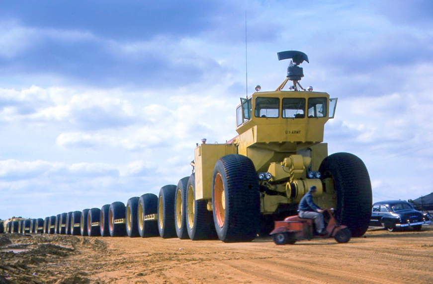 У 50-х роках американська компанія LeTourneau отримала замовлення від армії на створення автопоїздів із безліччю причепів. Вони повинні були забезпечити постачання військових у місцях, де немає залізниць.