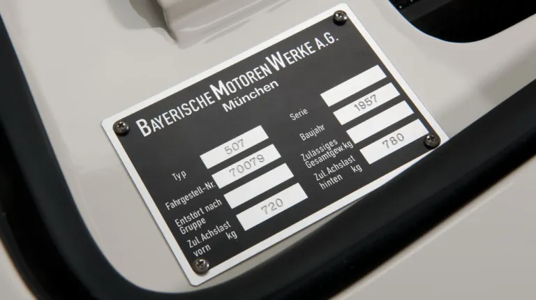 На фото того часу на BMW 507 чітко видно експортні номери. Пізніше Преслі видали номери американського зразка, які використовували військові силами США в Німеччині. Ці номери змінювалися щороку, що внесло свою плутанину в подальший процес ідентифікації автомобіля. Проте експертам фірмового архіву BMW Group Classic Archives вдалося знайти страховку, видану Елвісу Аарона Преслі в грудні 1958 року, де зазначено номер шасі 70079.