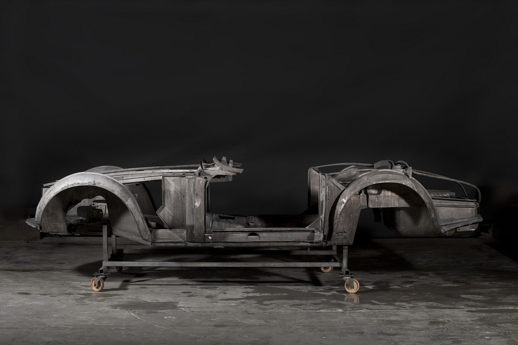 Для початку алюмінієві кузовні панелі відокремили від сталевих елементів підлоги. Потім всі деталі були ретельно очищені від фарби. Паралельно відбувався демонтаж двигуна і розбирання салону.