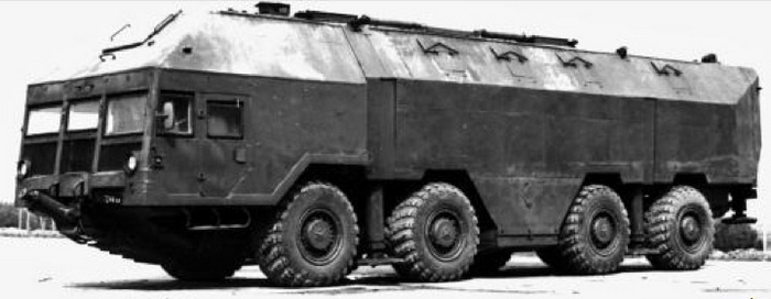 Чего только не придумывали конструкторы в эпоху холодной войны. Вот, например, этот вездеход МАЗ-543 (8х8), разработанный в качестве командно-штабной машины (КШМ). Фактически это был передвижной бункер, который мог функционировать в условиях ядерной войны. Всего за 30 минут автомобиль мог быть закопан под землю, а за происходящим вокруг его экипаж мог наблюдать через перископы на крыше.