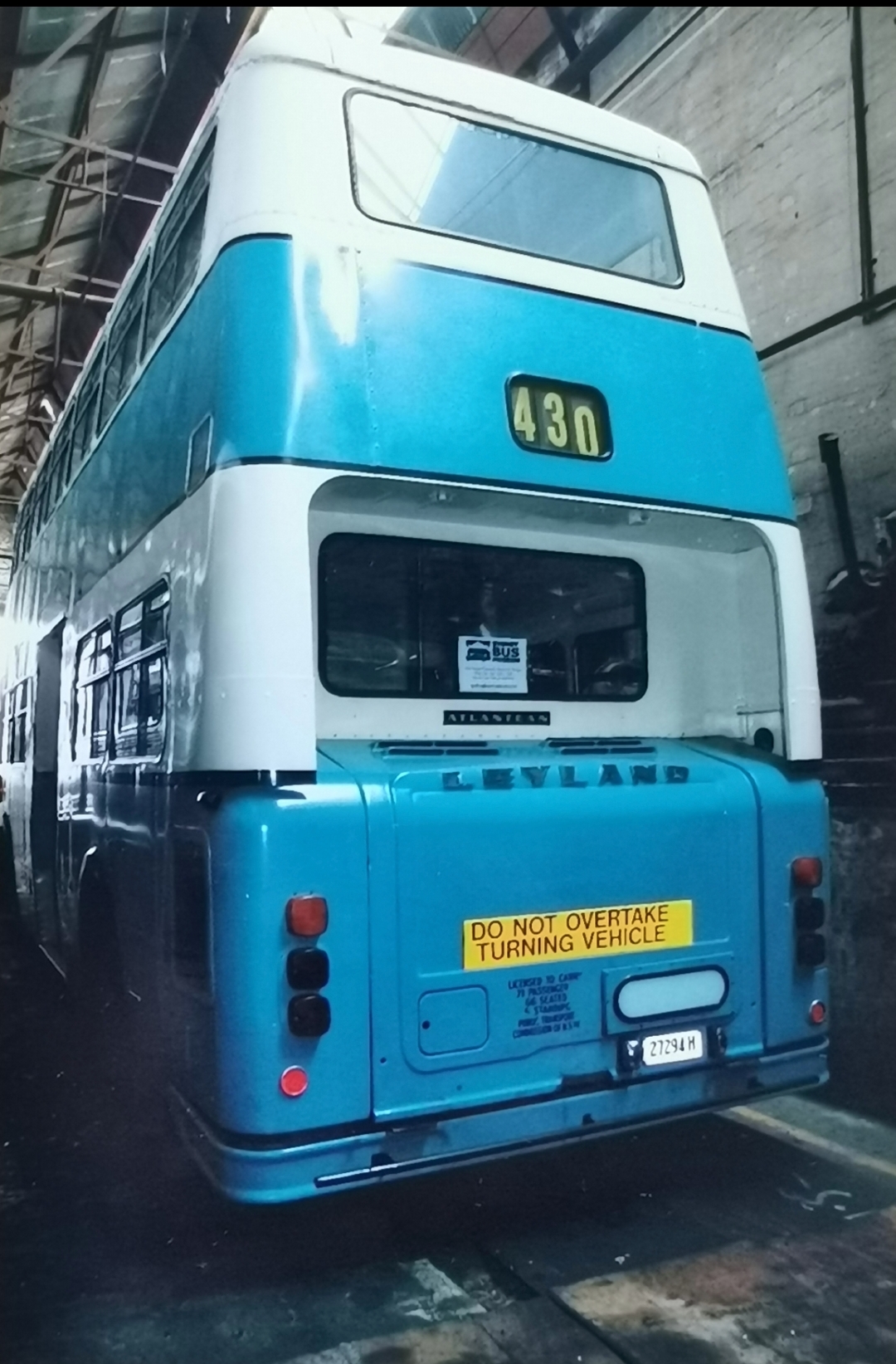 Безкапотний дабл-деккер із двигуном ззаду – Leyland Atlantean PDR 1A/1 (1969 г). Кузов – PMC (Pressed Metal Corp.). Місць – 71 (сид. – 66). Дизель – 150 л. с.