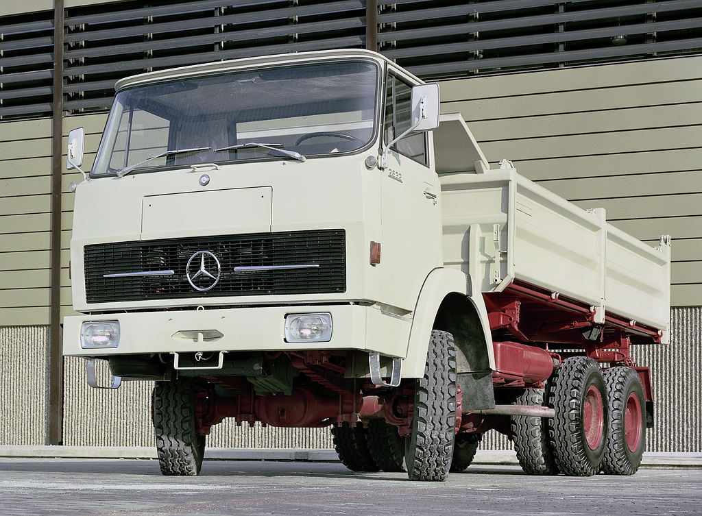 Важной вехой в развитии грузовиков Mercedes-Benz для строительства стало появление в марте 1959 года машин с коротким капотом. Все дело в том, что постановлением тогдашнего министра транспорта Зеебома в Германии были введены новые габаритно-весовые требования для грузовиков. Так и появились на свет «коротконосые» модели. Последние представляли сразу три класса: L 322 – полной массой 10,5 т, типичные среднетоннажники; L 327 – на 12 т, с максимальной полезной нагрузкой в свете новых норм; L323 (позднее L710) – машины весовой категории 7,5 т.