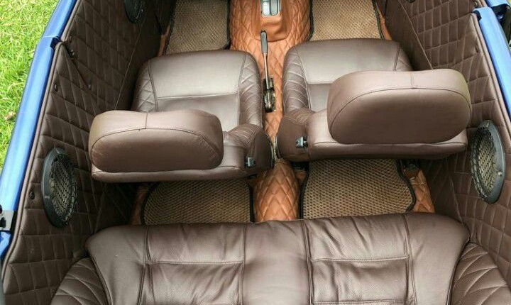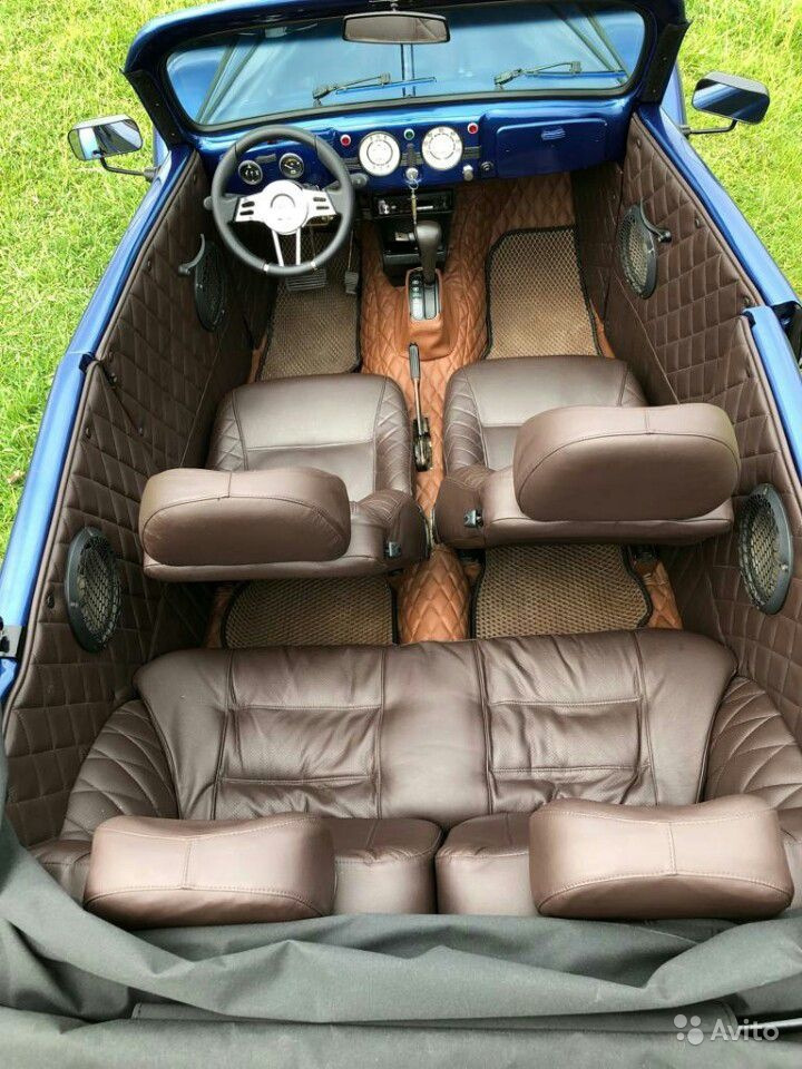 Інтер’єр оздоблений коричневою шкірою і має вельми дорогий вигляд. Оригінальна передня панель за традицією пофарбована в колір кузова.