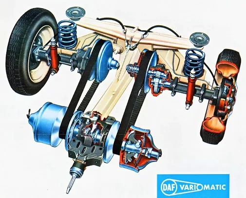 Перша легкова модель — DAF 600 стала сенсацією. Річ у тім, що вона мала зовсім незвичайну автоматичну трансмісію Variomatic — безступеневу, клиноременну. Передавальне число там плавно варіювалося за рахунок зміни діаметрів шківів. Їх приводили в дію довгі ремені, за які машину жартівливо називали "автомобіль на підтяжках".