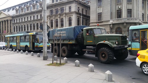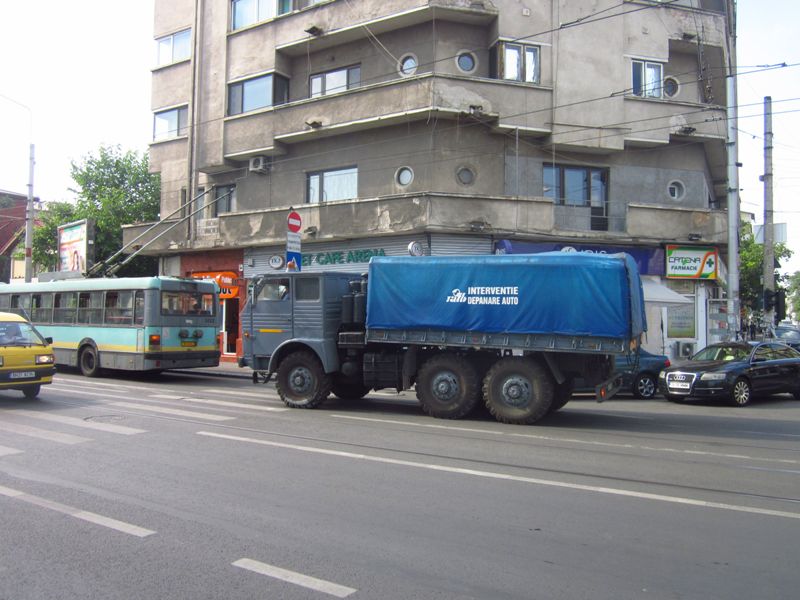 На вулицях українських міст частенько можна побачити повнопривідні КрАЗ-255б1, прозвані “лаптіжниками”, які працюють евакуаторами автобусів і тролейбусів, що поламалися на маршруті. Виявляється, наші КрАЗи займаються тим самим і в румунській столиці — Бухаресті.