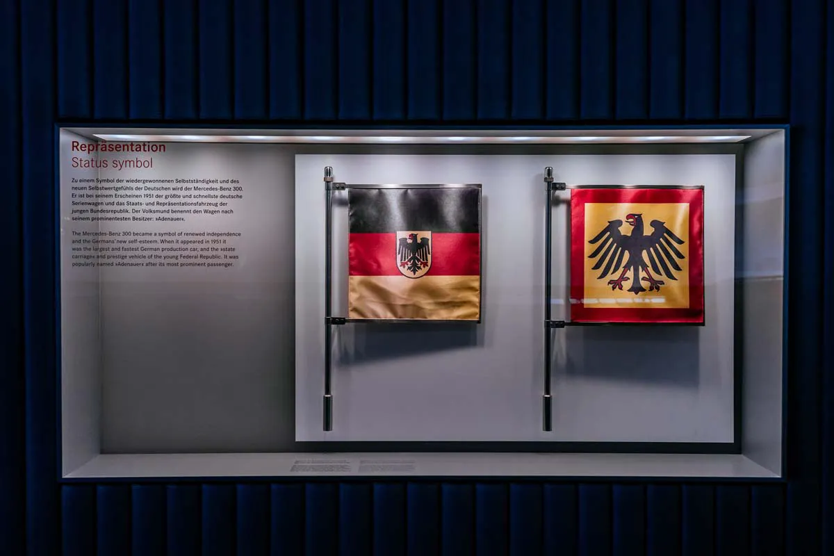 Цікаво, що на Mercedes-Benz 300 їздив ще й Федеральний президент. Вирізнялися машини прапорцями на крилах. Якщо у канцлера орел був зображений на чорно-червоно-золотому тлі (кольорах німецького прапора), то президентський орел був на золотому тлі в червоній рамці.