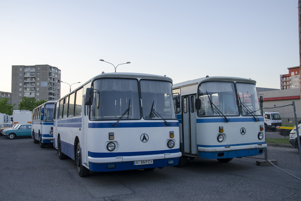 Модели ЛАЗ-699Р и 695Н, участвовавшие в съемках, зарегистрированы в Киевской области. Ехали автобусы своим ходом, или же перевозили их, нам неизвестно, но, думаем, что всё же второе – вряд ли старенькие ЛАЗы захотели бы поддать таким серьезным нагрузкам. К тому же, судя по фото, некоторые экземпляры выглядят как музейные экспонаты – таким автобусам точно бы не позволили “ударить автопробегом”.
